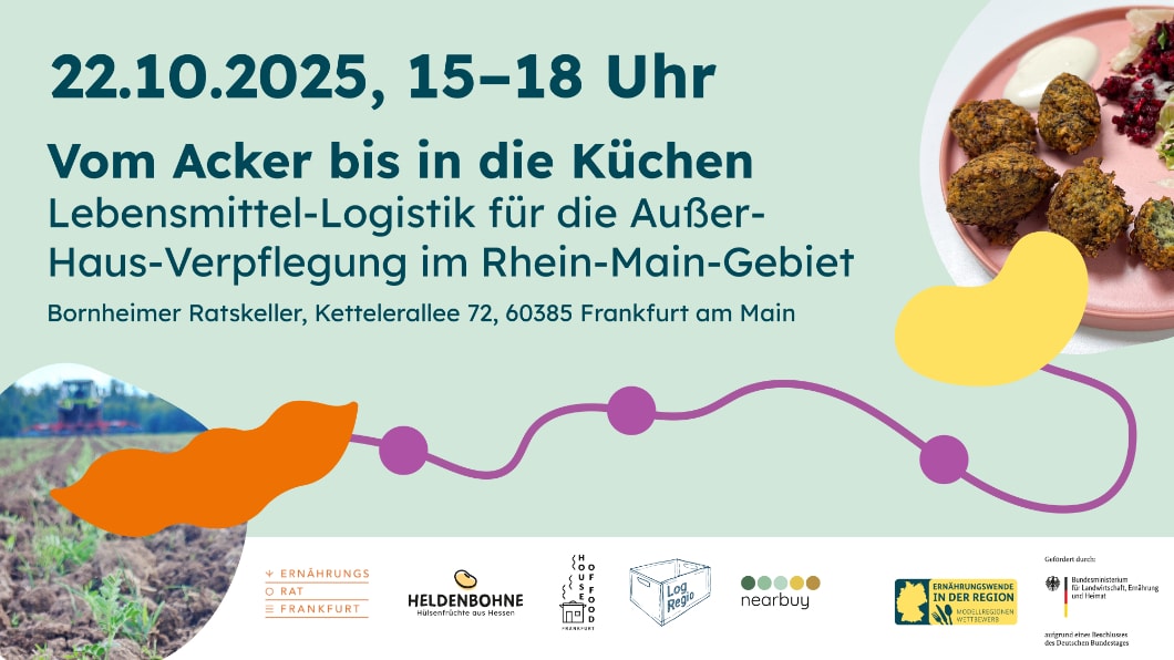 Am 22. Oktober 2025 (15–19 Uhr, Bornheimer Ratskeller Frankfurt) veranstaltet die Heldenbohne gemeinsam mit dem House of Food Frankfurt, Nearbuy und LogRegio einen Fachaustausch zur Lebensmittel-Logistik für die Außer-Haus-Verpflegung mit Fokus auf Hülsenfrüchte im Rhein-Main-Gebiet.
